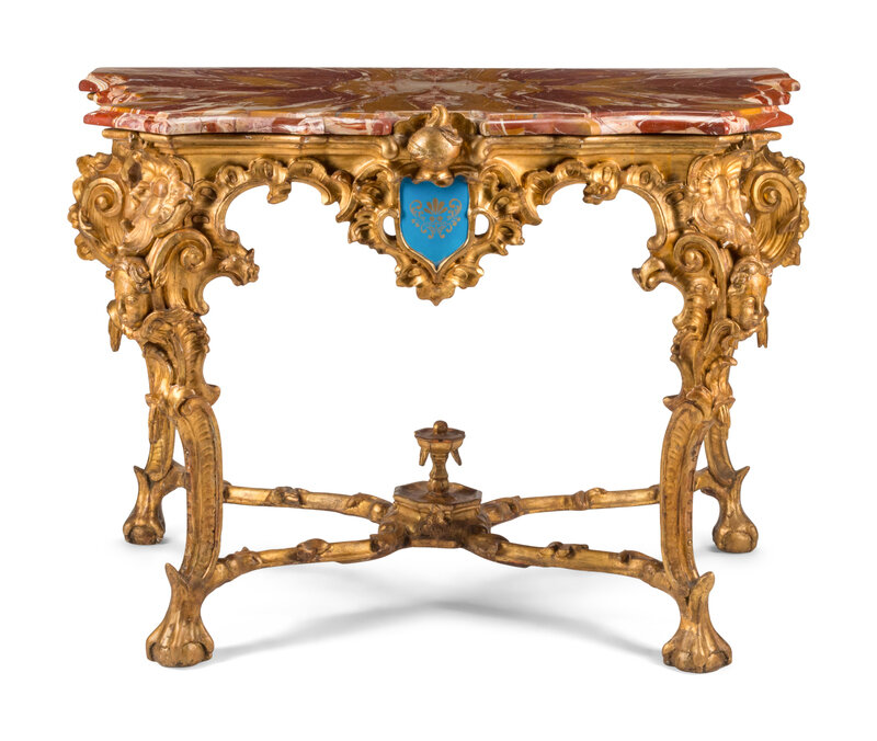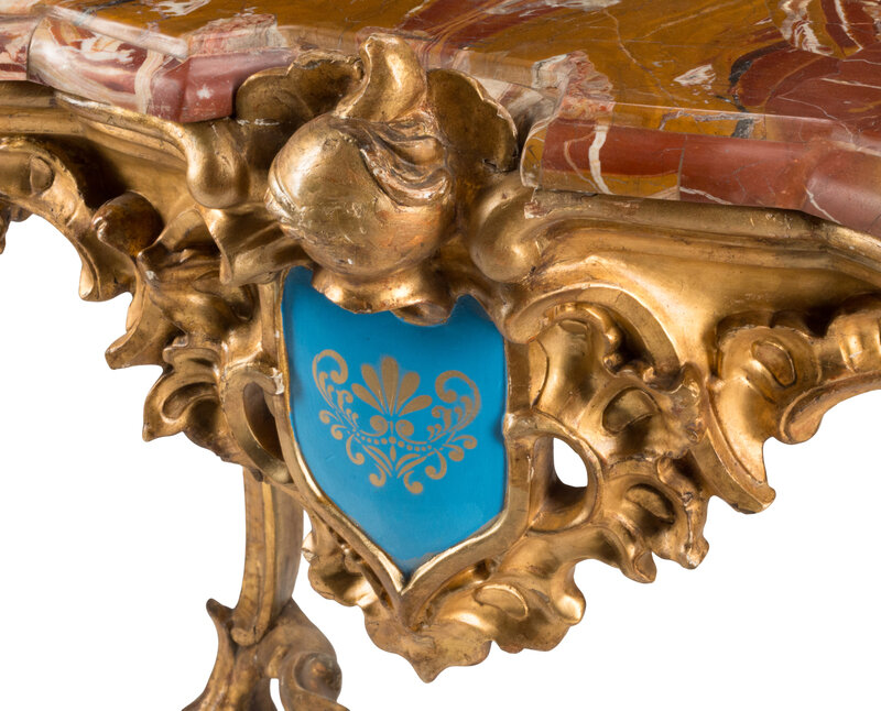A Venetian Carved Giltwood Marble-Top Console Table