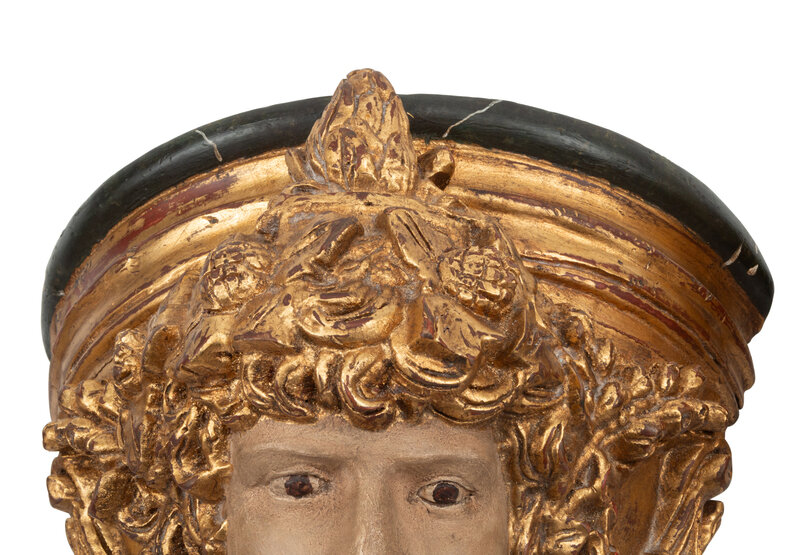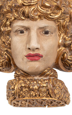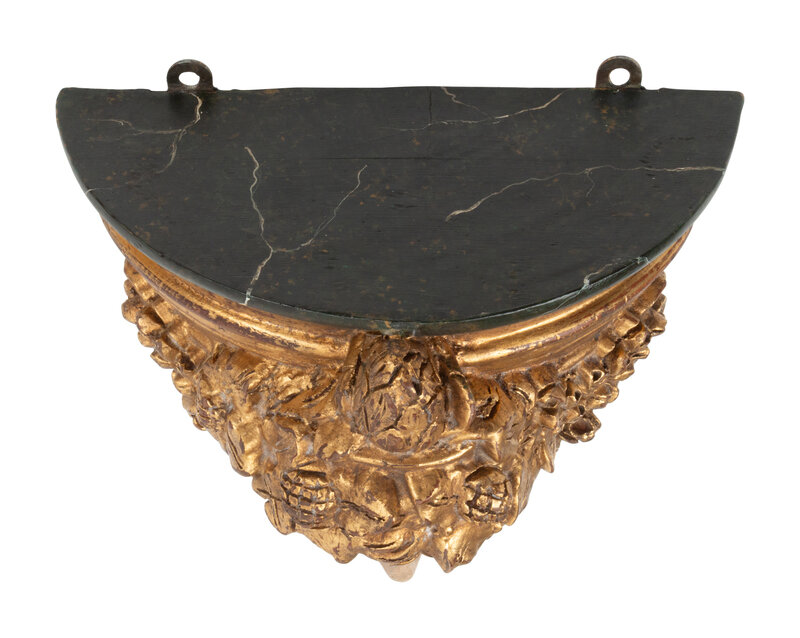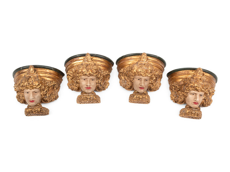 A Set of Four Italian Carved, Painted and Parcel Gilt Wall Brackets