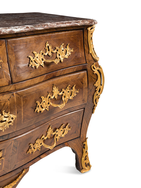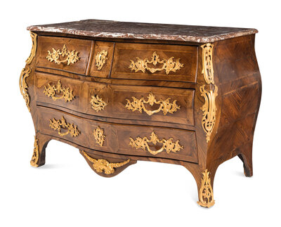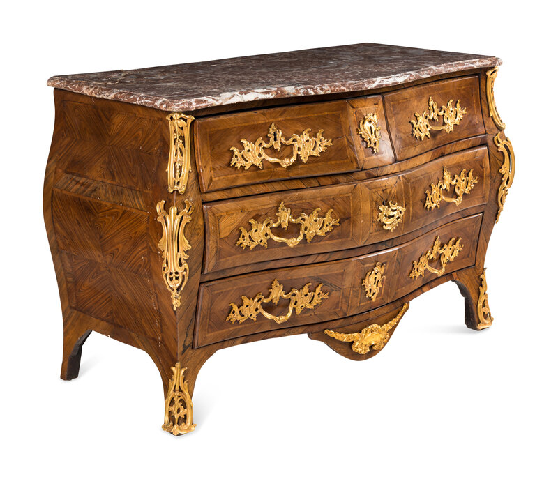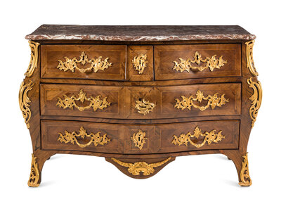 A Louis XV Gilt Bronze Mounted Tulipwood Commode