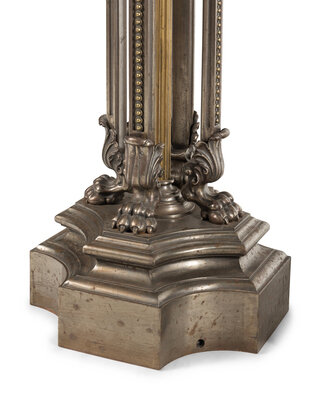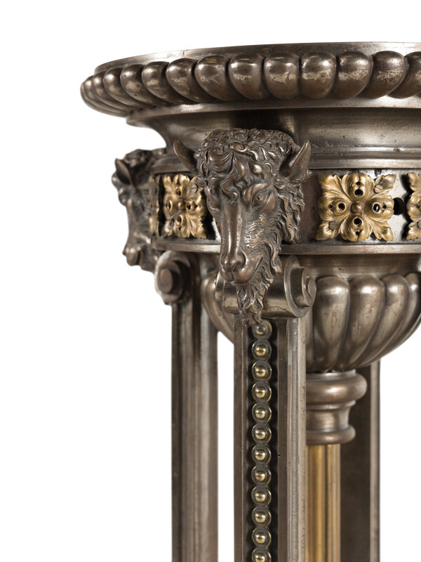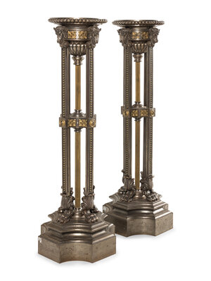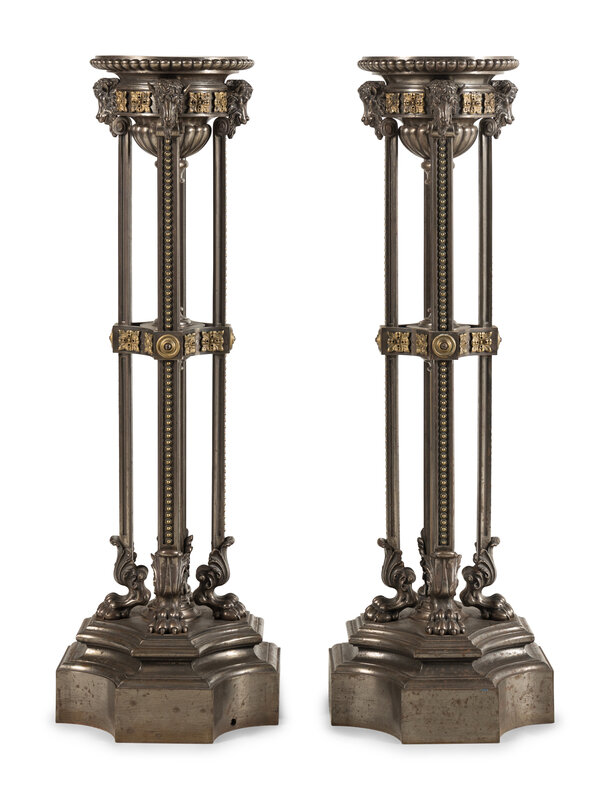 A Pair of Continental Neoclassical Style Gilt Bronze and Polished Steel Pedestals