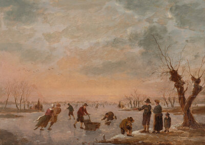 Ice Skaters on a Frozen River