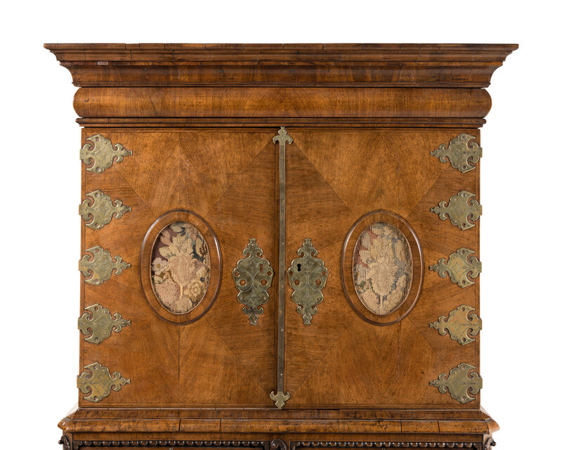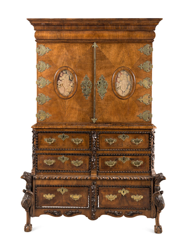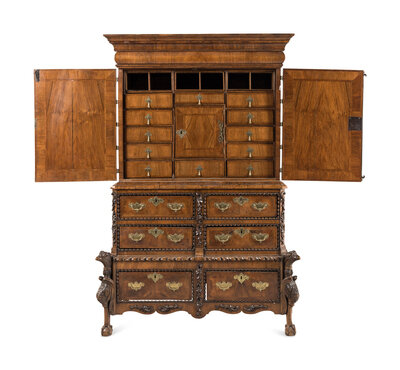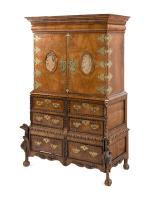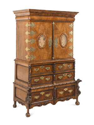 A Continental Baroque Brass Mounted Walnut Cabinet on Chest