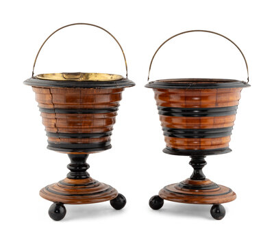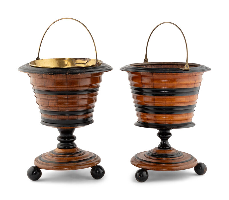 A Near Pair of Dutch Walnut and Part Ebonized Peat Buckets