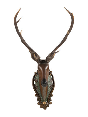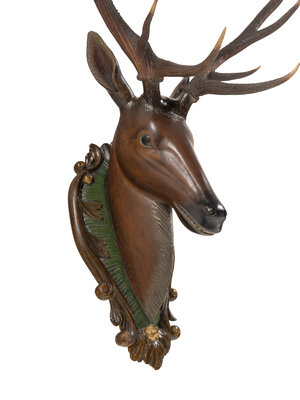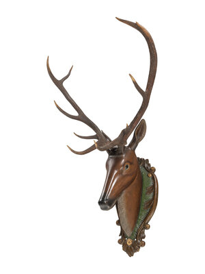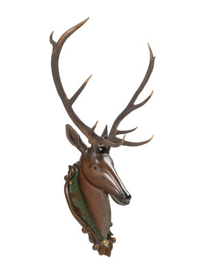 A Swiss 'Black Forest' Carved and Paint-Decorated Stag Head Trophy