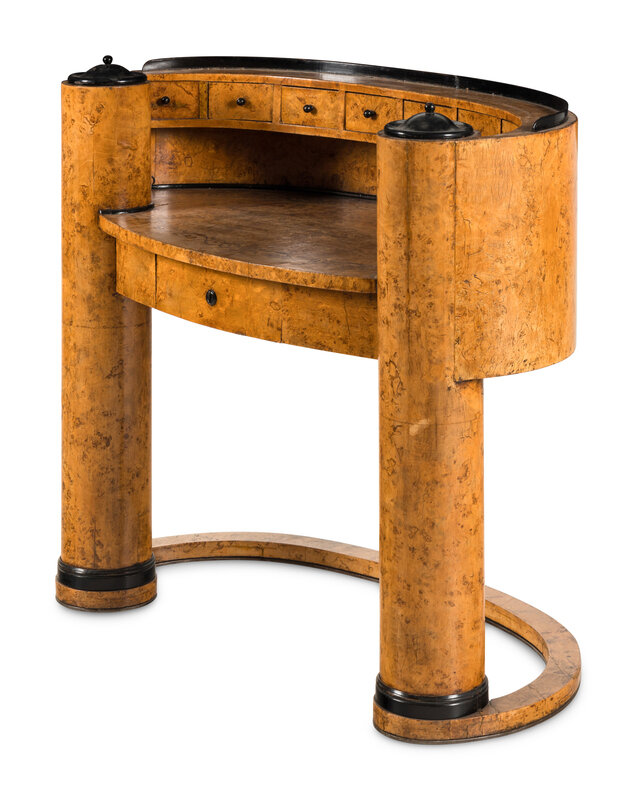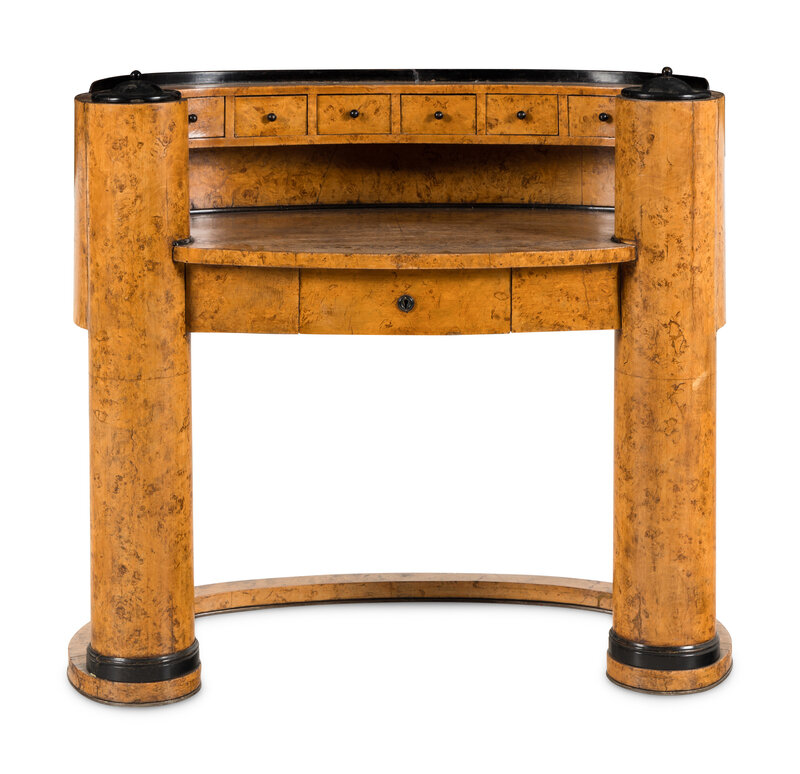 A Biedermeier Style Part Ebonized and Inlaid Karelian Birch Desk