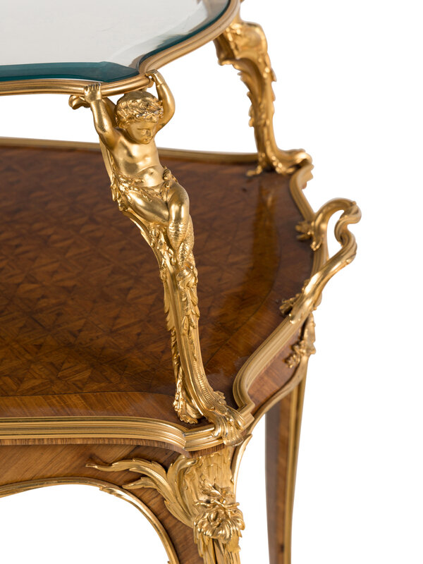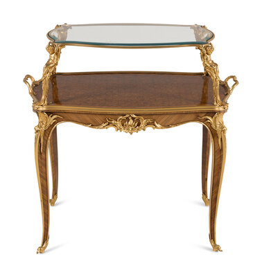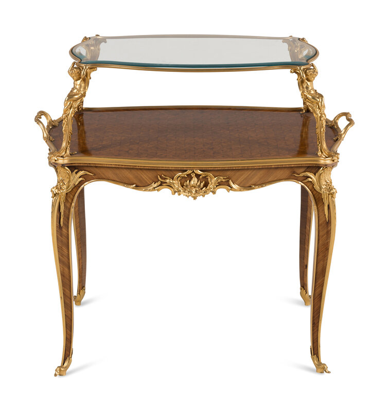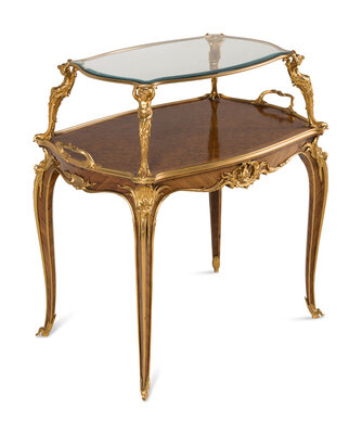 A Louis XV Style Gilt Bronze Mounted Parquetry Table à Thé