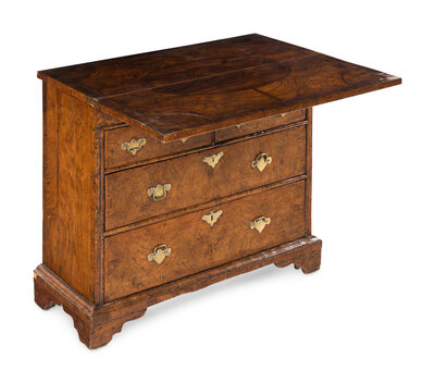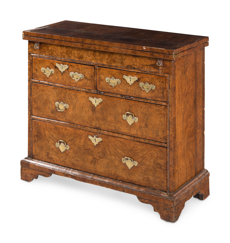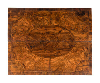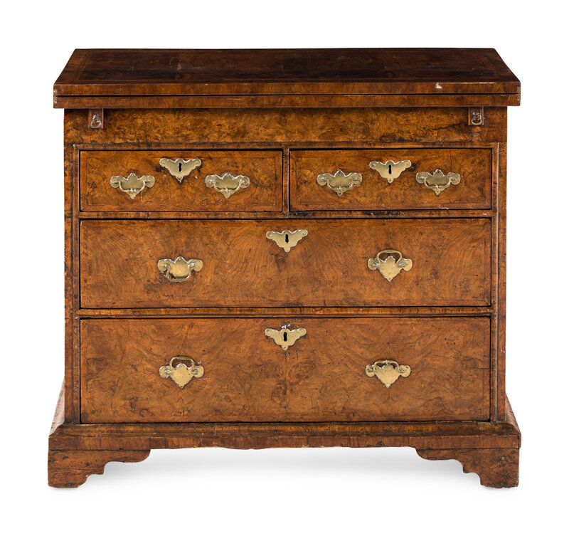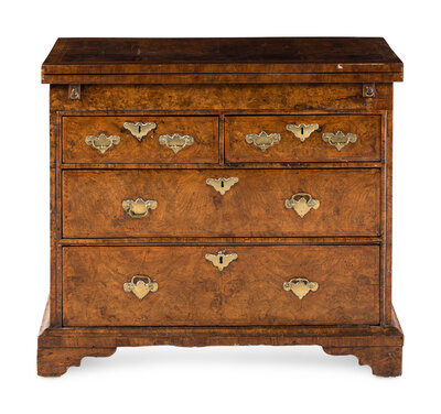 A Queen Anne Feather-Banded Burl Walnut Flip-Top Bachelor's Chest