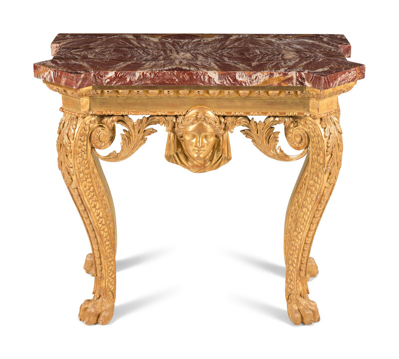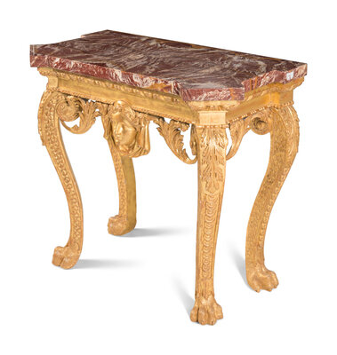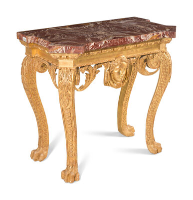 A George II Carved Giltwood and Red-Onyx Veneered Top Pier Table