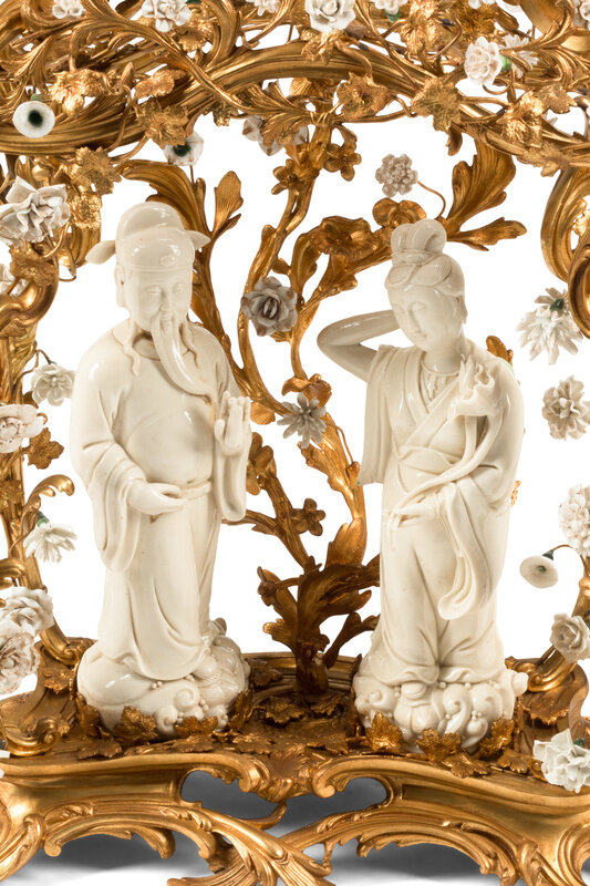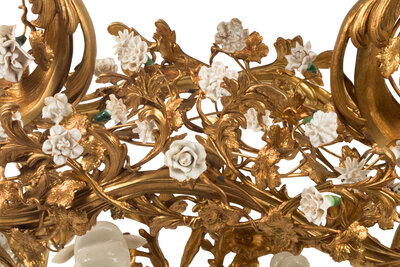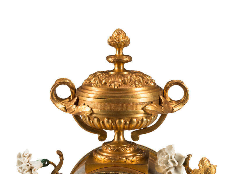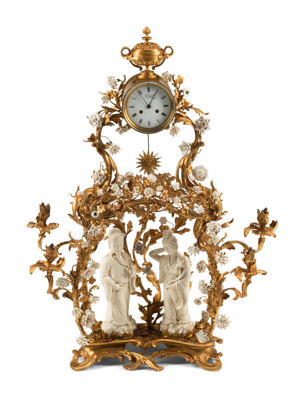 A Louis XV Style Porcelain Mounted Gilt Bronze Clock