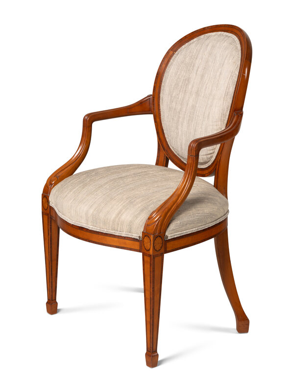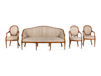 Height of settee 37 x width 73 x depth 33 inches; height of armchair 37 x width 23 x depth 21 inches.