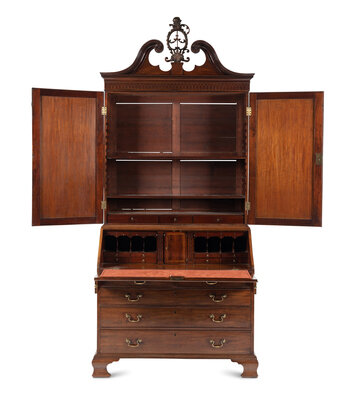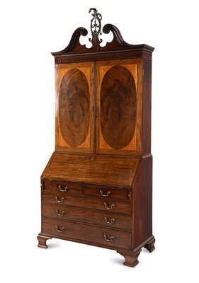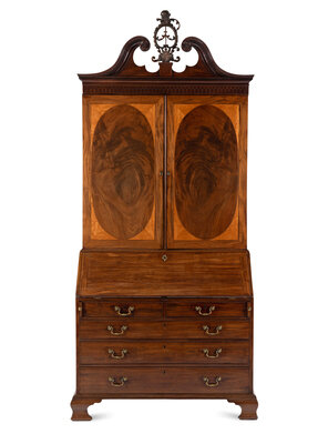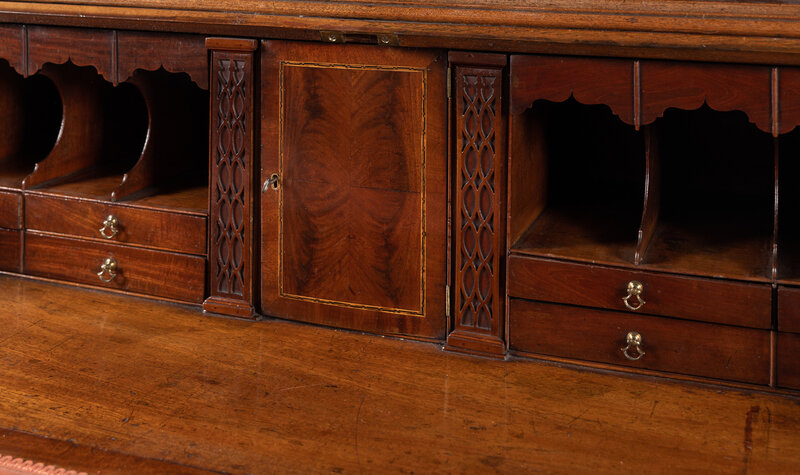 A George III Mahogany and Boxwood Slant-Front Bureau Cabinet