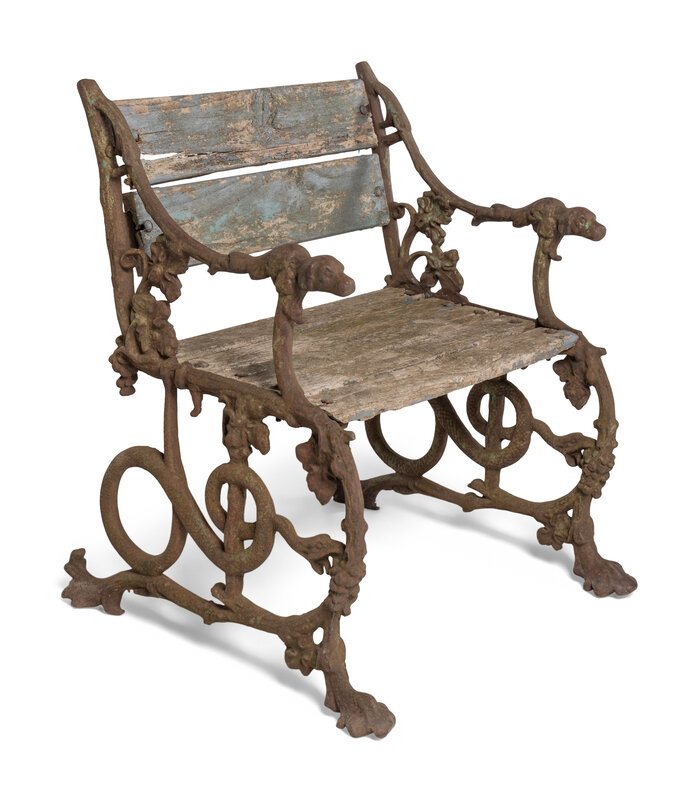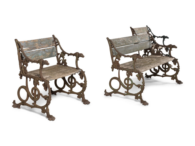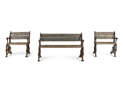 A Group of Coalbrookdale Painted Wood and Iron Garden Benches