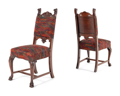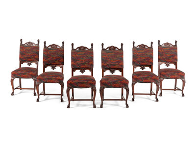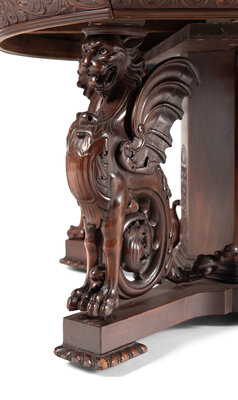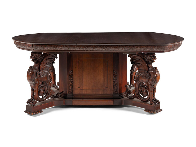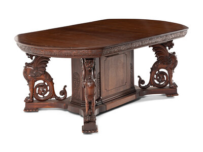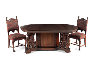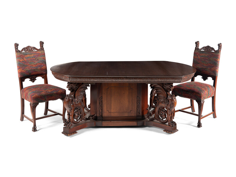 A Renaissance Revival Carved Mahogany Dining Table and Set of Six Chairs