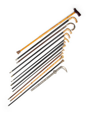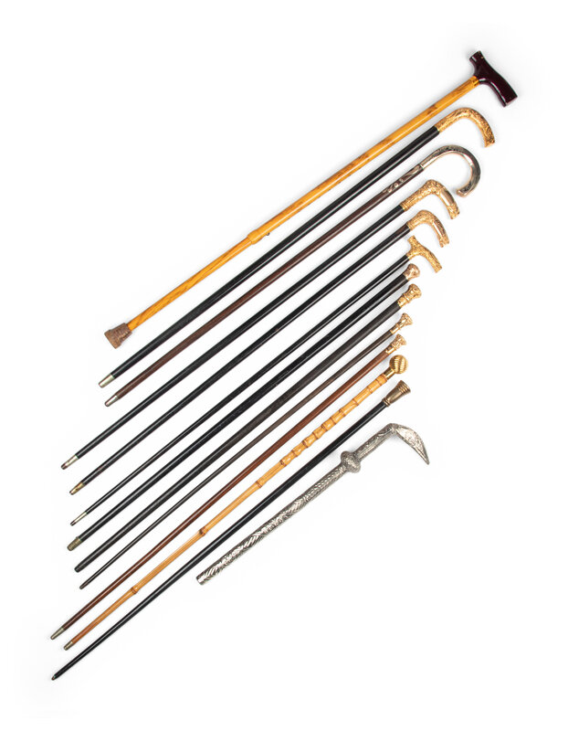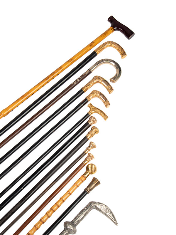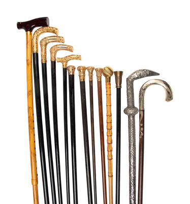 A Collection of Thirteen Gold-Filled, Silver and Metal Mounted Walking Sticks