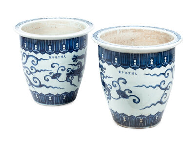 A Pair of Chinese Blue and White Porcelain Jardinières