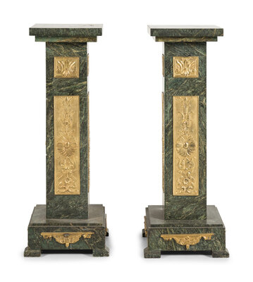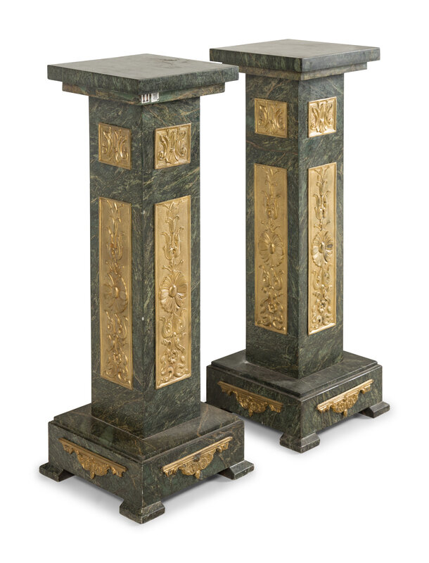 A Pair of Louis XVI Style Gilt Bronze Mounted Marble Pedestals