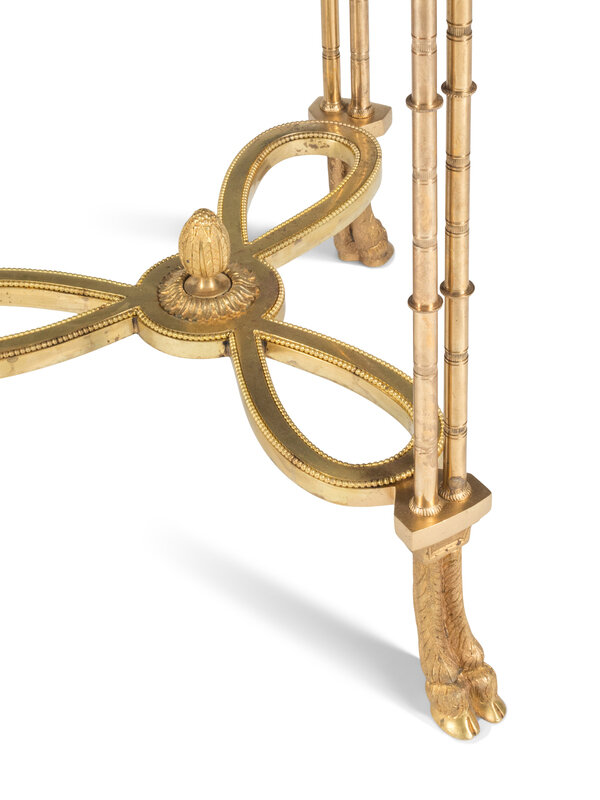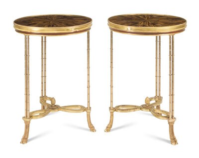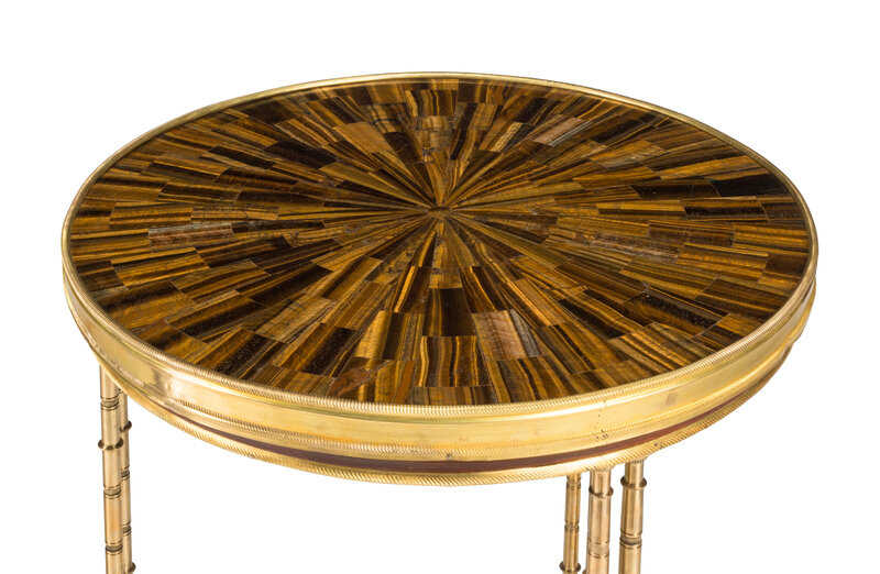 A Pair of French Neoclassical Style Gilt Bronze and Tiger's Eye Guéridons