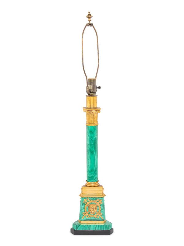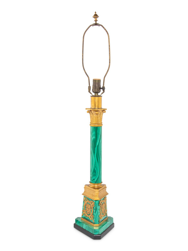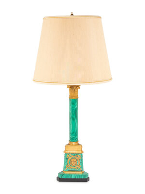 An Empire Style Gilt Bronze Mounted Malachite Table Lamp