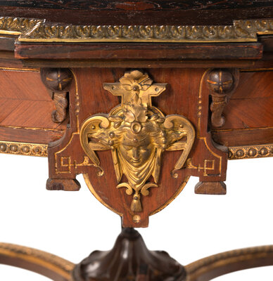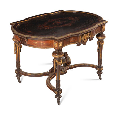 A Napoleon III Gilt Bronze Mounted Marquetry Center Table