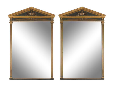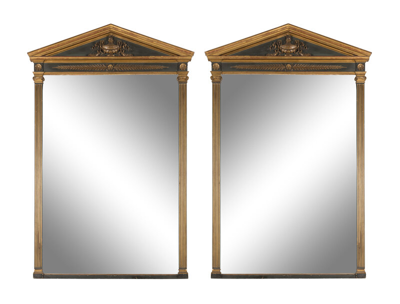A Pair of Neoclassical Style Parcel Gilt and Ebonized Mirrors