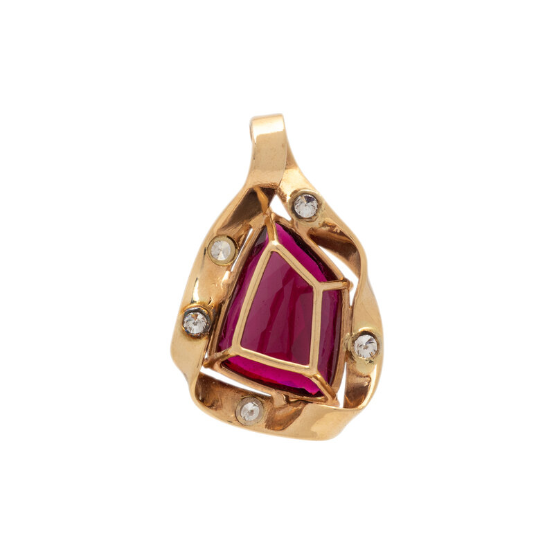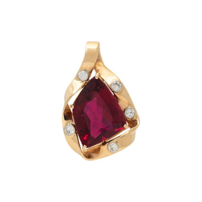 RUBELLITE TOURMALINE, DIAMOND, AND YELLOW GOLD PENDANT