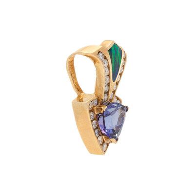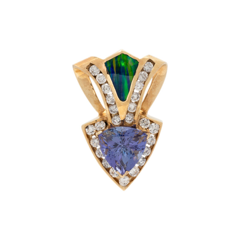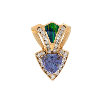 TANZANITE, BLACK OPAL, AND DIAMOND PENDANT