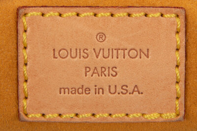 Additional Information: Gold-tone hardware, zipper closure, exterior zipper pocket, two exterior patch pockets with push-lock closures, metal protective feet at base, yellow microfiber lining, interior slip pocket.