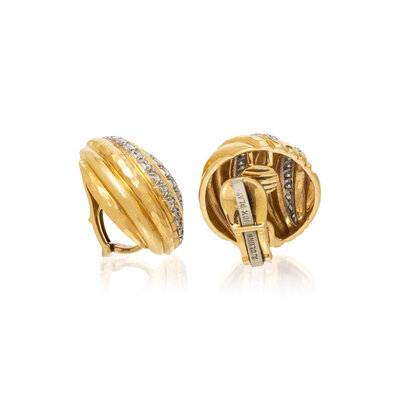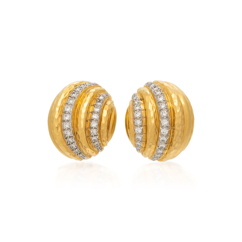 ANDREW CLUNN, HAMMERED GOLD, DIAMOND, AND PLATINUM EARRINGS