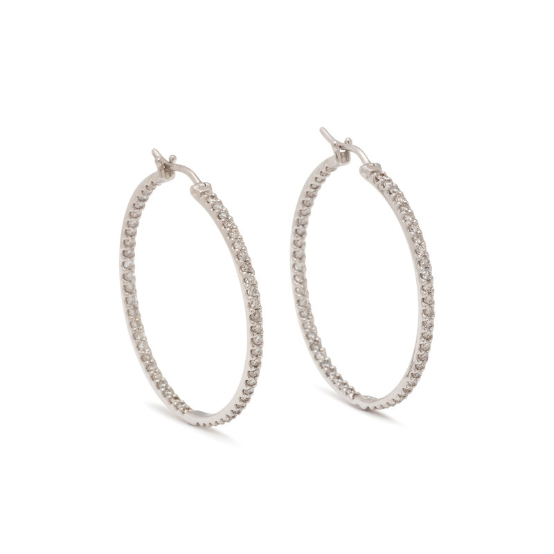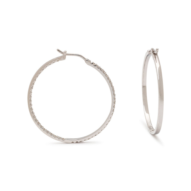 Round diamonds weighing approximately 2.05 carats total. 18 karat white gold. 1 1/2 inches long.