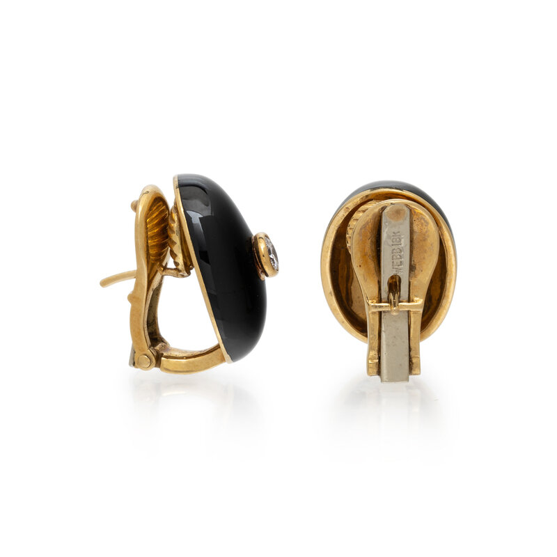 DAVID WEBB, ENAMEL AND DIAMOND EARCLIPS