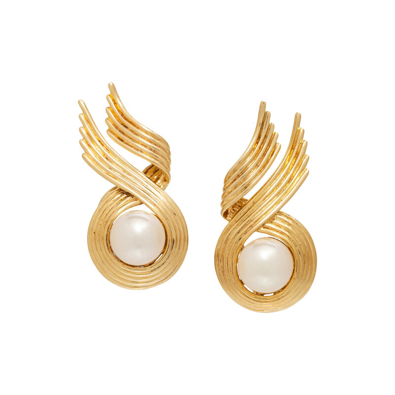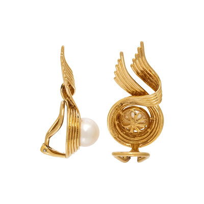 TIFFANY & CO., SCHLUMBERGER, YELLOW GOLD AND CULTURED PEARL EARRINGS