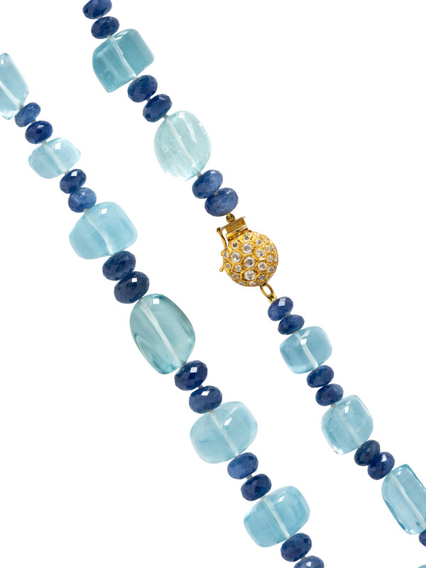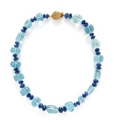 AQUAMARINE, SAPPHIRE, AND DIAMOND NECKLACE