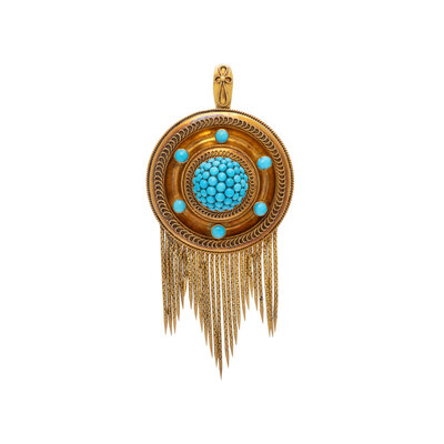 VICTORIAN, TURQUOISE AND YELLOW GOLD LOCKET PENDANT BROOCH