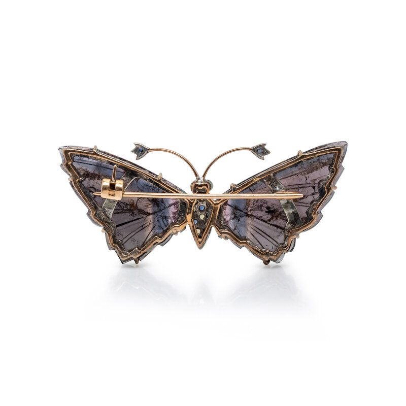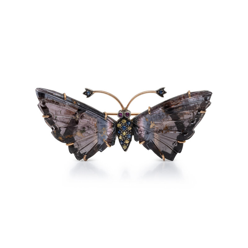 CARVED TOURMALINE AND MULTIGEM BUTTERFLY BROOCH