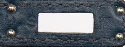 Additional Information: Palladium hardware; turn-lock toggle closure; goatskin lining; one main compartment with one slip pocket.