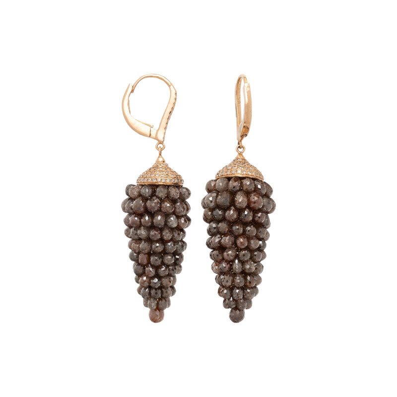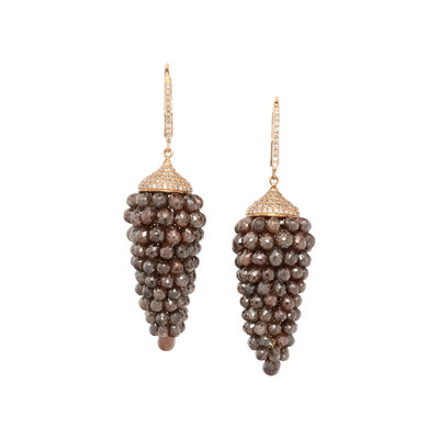 Briolette cut brown diamonds (origin of color not tested) and round diamonds weighing approximately 0.70 carat total. 18 karat rose gold. 2 inches long.
