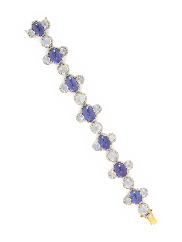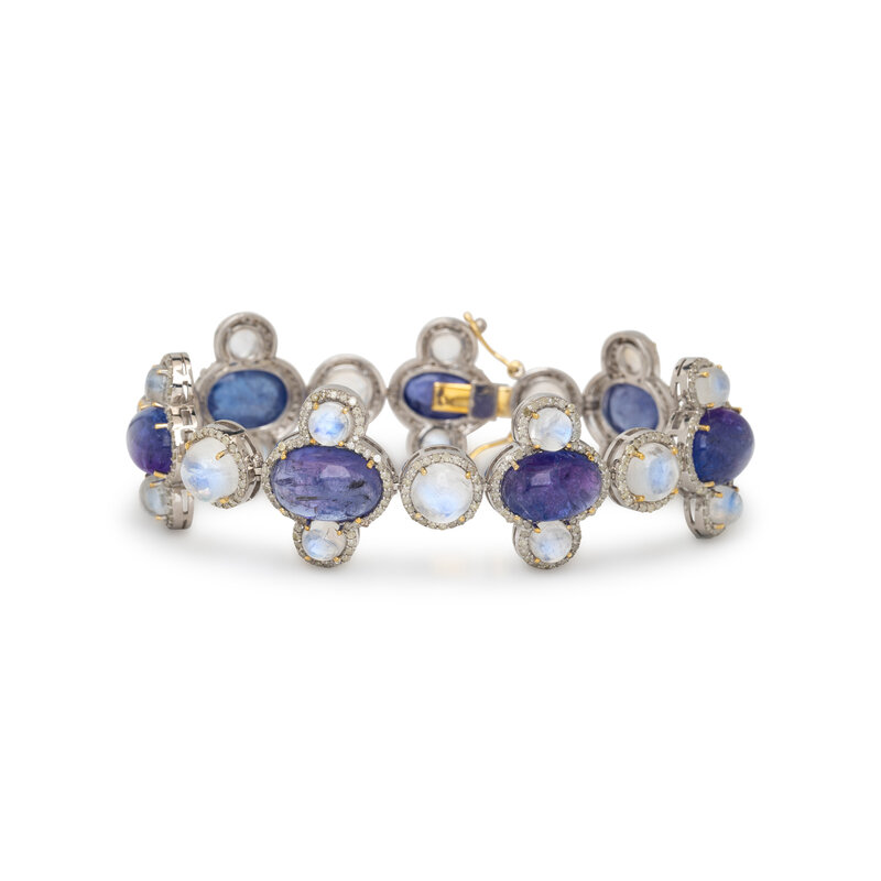 TANZANITE, MOONSTONE, AND DIAMOND BRACELET
