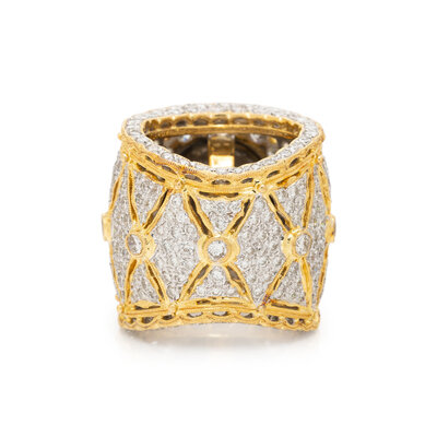 BICOLOR GOLD, DIAMOND, AND CULTURED PEARL RING