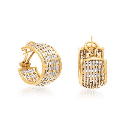 CARTIER, YELLOW GOLD AND STEEL HOOP EARRINGS