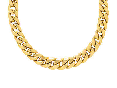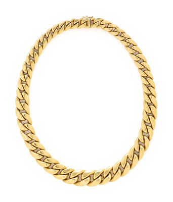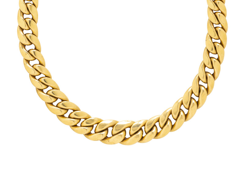 Graduating links measuring approximately 8.00 - 14.00 mm. 18 karat yellow gold. 14 3/8 inches long.