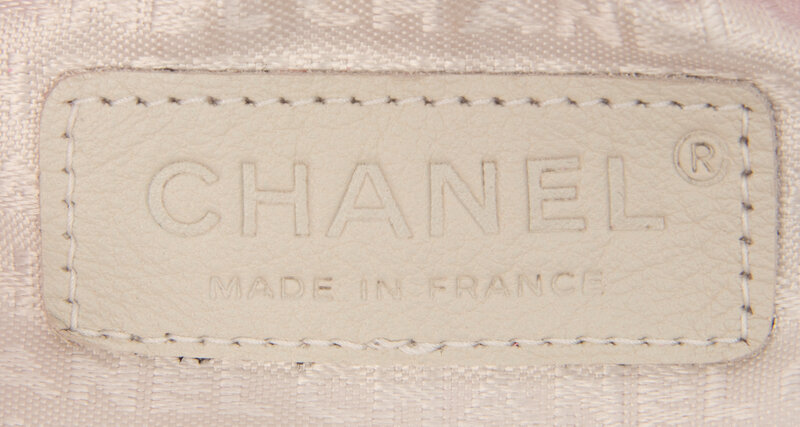 Additional Details: Exterior slip pocket with snap closure; leather leaf charms at chain and drawstrings; off-white jacquard lining