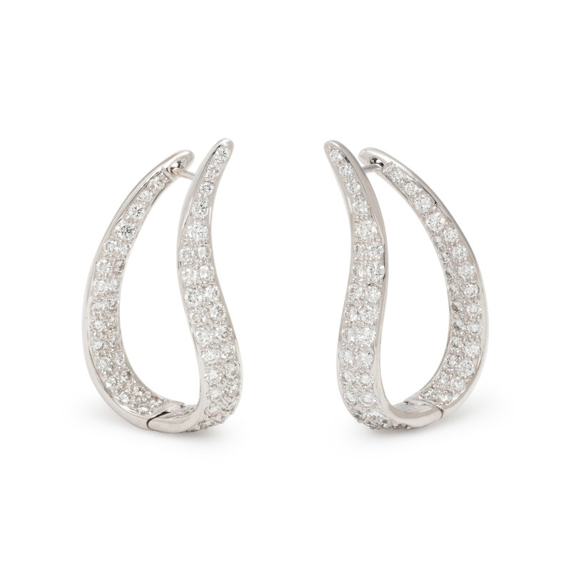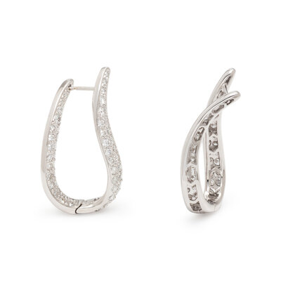 Round diamonds weighing approximately 3.25 carats total. 18 karat white gold. 1 1/2 inches long.