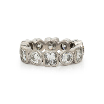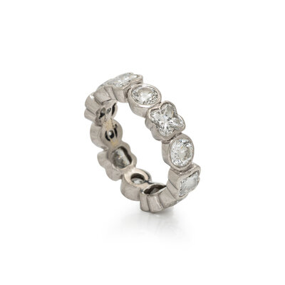 Round and modified princess cut diamonds weighing approximately 4.50 carats total. Platinum. Ring size 6.