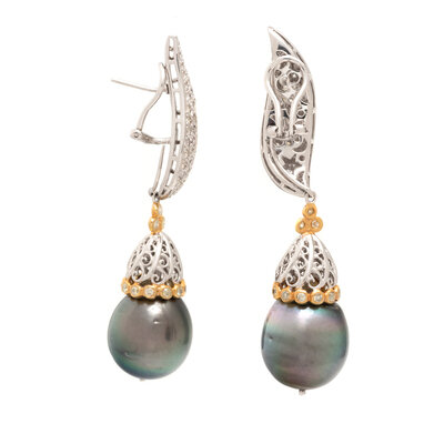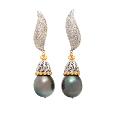 DIAMOND AND GRAY CULTURED PEARL EARRINGS