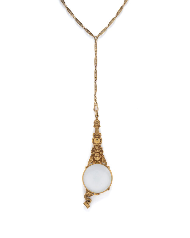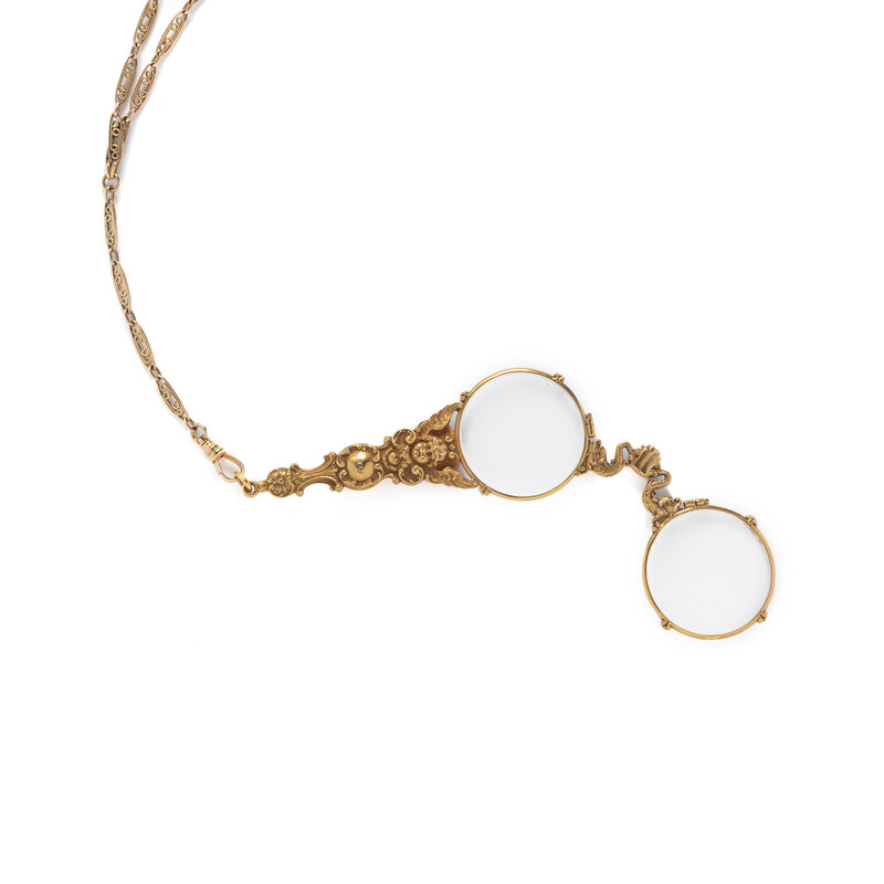 ART NOUVEAU, YELLOW GOLD LORGNETTE AND CHAIN