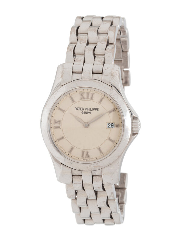 Bracelet/Strap: 18K white gold brick link Patek Philippe bracelet with double deployant clasp