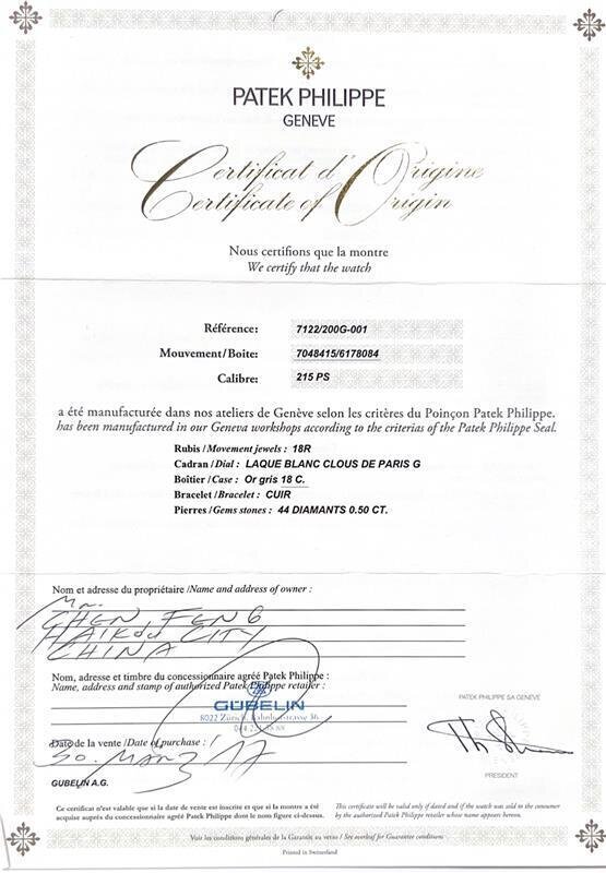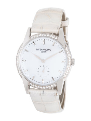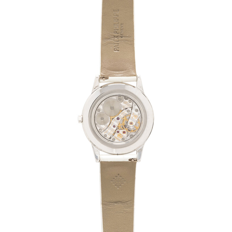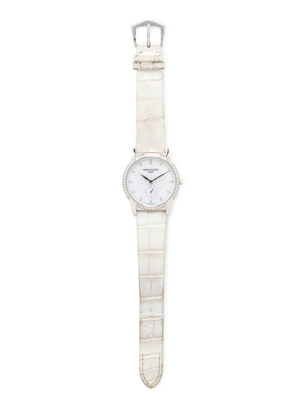 Bracelet/Strap: Patek Philippe white leather strap with 18K white gold Patek Philippe buckle