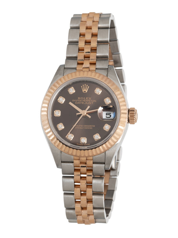 ROLEX, REF. 279171 ROSE GOLD AND STAINLESS STEEL 'LADY-DATEJUST' CHOCOLATE DIAMOND DIAL AND JUBILEE BRACELET, BOX & PAPERS