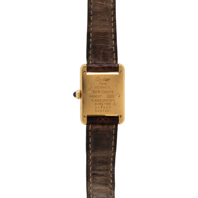 Stamps: Case back: Cartier Paris VERMEIL Tank Quartz ARGENT 925 PLAQUE OR G 20M SWISS MADE 107269 5157001