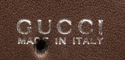 Additional Information: Brown polished hardware, push-lock closure, brown pleather lining, interior zipper pocket.